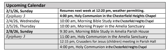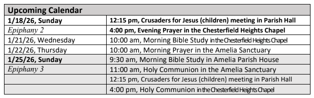 11:00 am–Holy Communion (In person at Amelia Sanctuary and via Zoom)